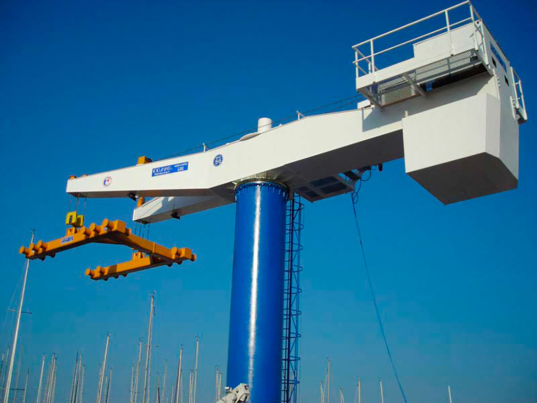 Co.Mas group harbor cranes are specially designed to withstand the harsh weather conditions of marinas, as they are treated with special paints and resins for such uses.