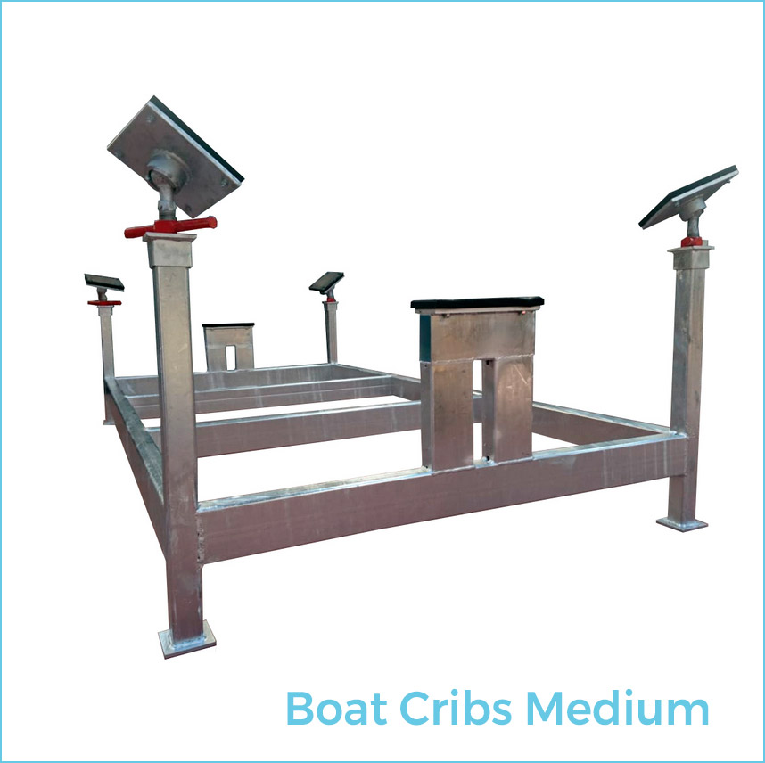 - Boat Cribs Medium: WIDTH: 1.500 mm. LOAD: 3.000 KG. HEIGHT BOW: 700 mm. HEIGHT STERN: 600 mm. 4 telescope screw