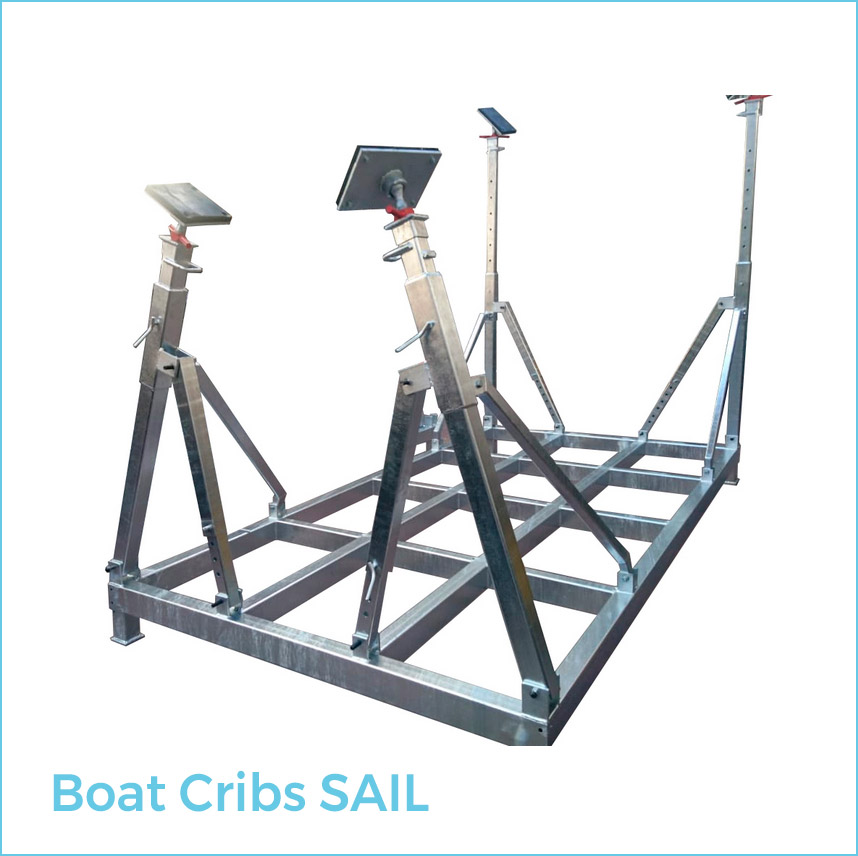 - Boat Cribs SAIL: LONG: 4.000 mm. WIDTH: 2.000 mm. LOAD MAX: 10.000 KG. HEIGHT MÍN: 1.600 mm. HEIGHT MAX: 2.500 mm